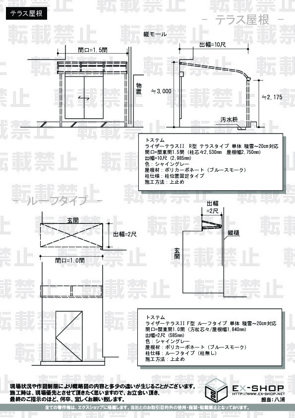 | サイズ | 屋根幅 2,750mm 出幅 2,985mm |