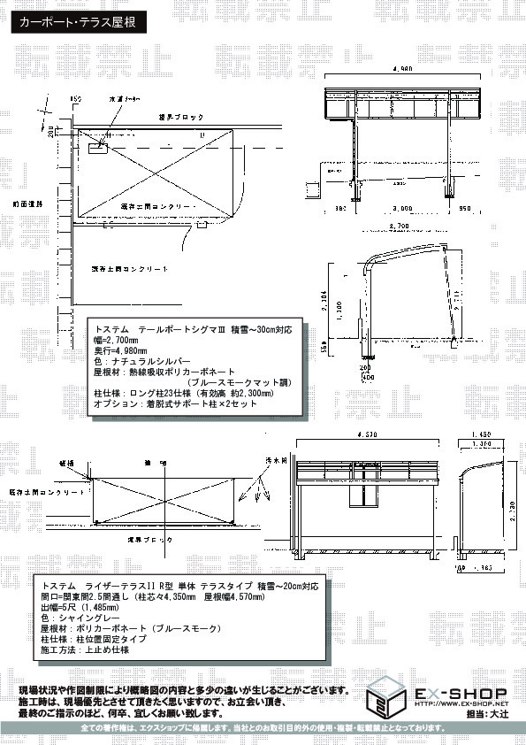 サイズ | 屋根幅 4,570mm 出幅 1,485mm |