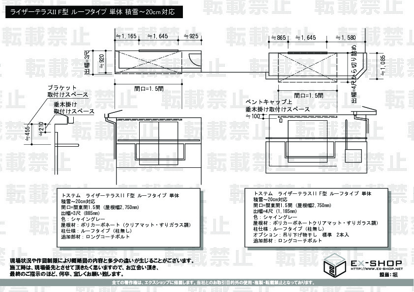 | サイズ | 屋根幅 2,750mm 出幅 885mm |