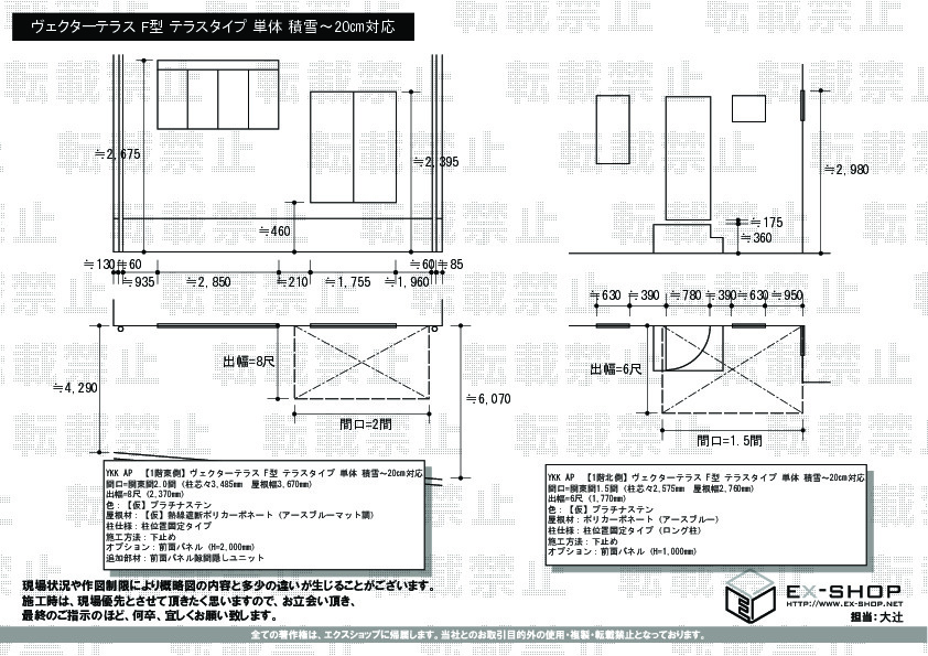 | サイズ | 屋根幅 3,670mm 出幅 2,370mm |