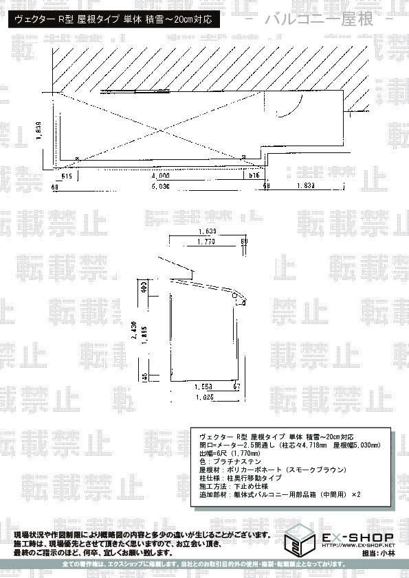 | サイズ | 屋根幅 5,030mm 出幅 770mm |