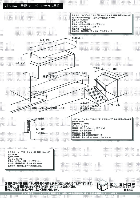 | サイズ | 屋根幅 5,020mm 出幅 1,185mm |