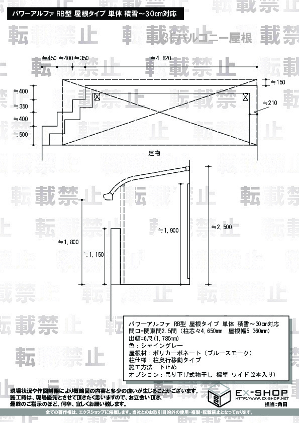 サイズ | 屋根幅 5,360mm 出幅 1,785mm |