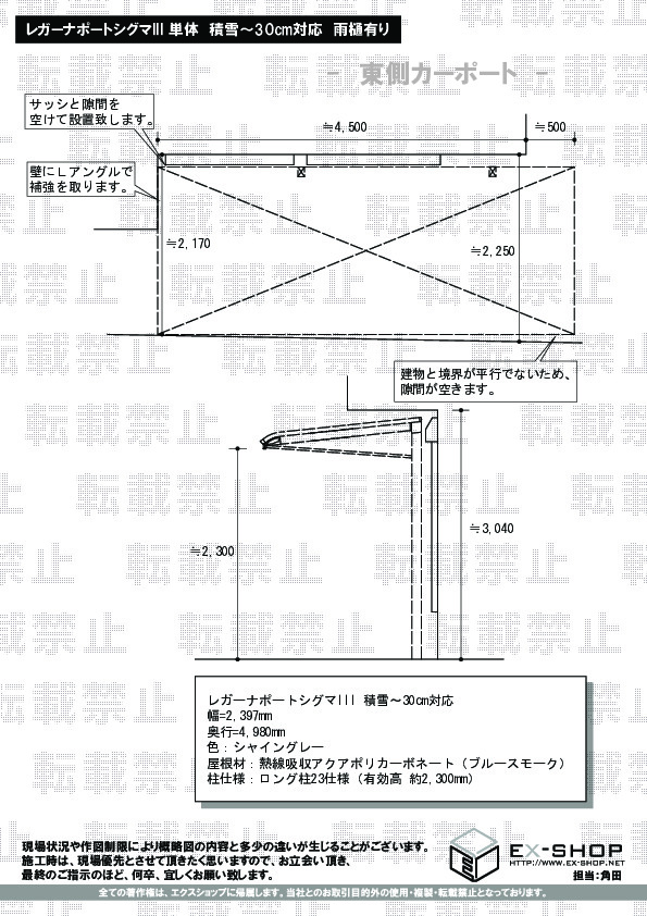 屋根高等 | ロング柱23仕様(有効高 約2,300mm) |