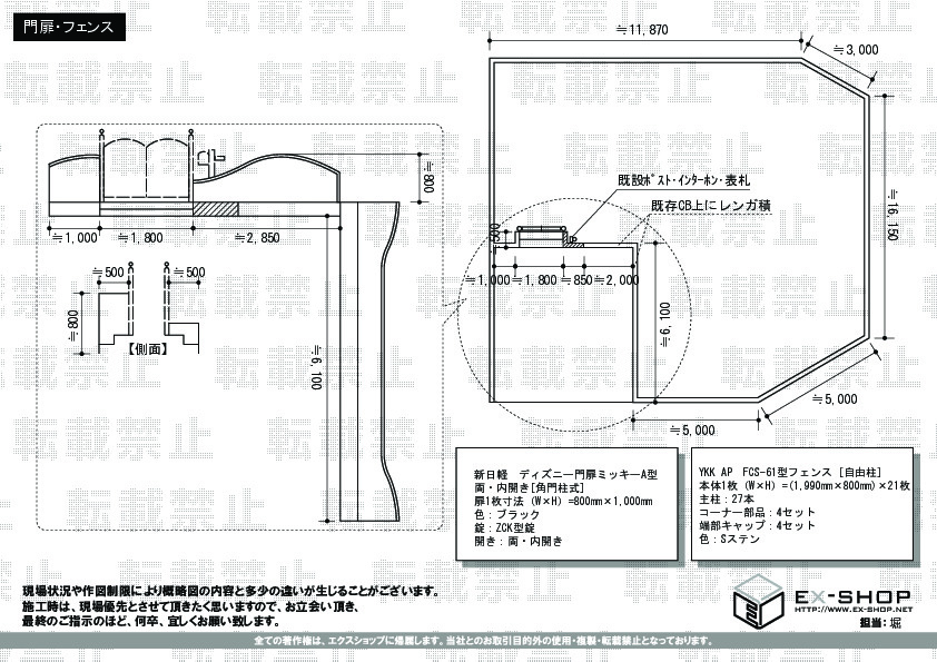大きなミッキーの顔が存在感のあるディズニー門扉と、反対にさりげなさが魅力の新日軽のFCS-61型フェンスとの好対照が本当に素敵な外構周りですね。併せて、レンガ積みの施工もご依頼頂きまして、誠に有難うございます。とてもキレイなアールのラインで嬉しく思います。お客様のご希望に沿う形ですべて進行することができ、ご満足頂けましたことは、私どもにとりましても自信となりました。これからも、お客様のご期待を裏切らないよう精進して参りますので、また機会がございましたら、ぜひエクスショップをご利用頂けますよう、宜しくお願い致します。