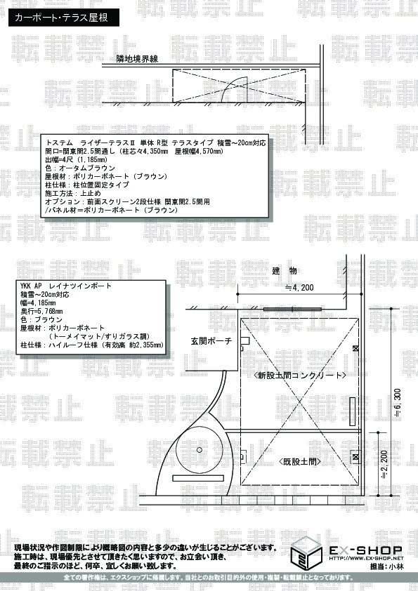 | サイズ | 屋根幅 4,570mm 出幅 1,185mm |