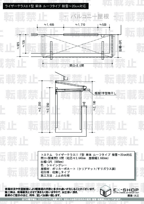 サイズ | 屋根幅 3,660mm 出幅 885mm |