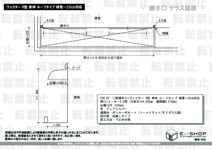 | サイズ | 屋根幅 4,075mm 出幅 570mm |