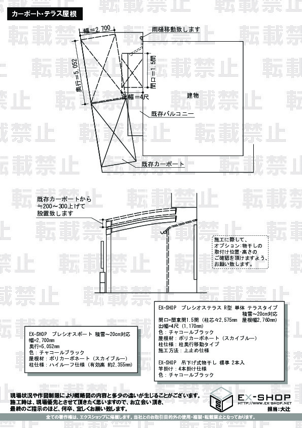 サイズ | 屋根幅 2,760mm 出幅 1,170mm |