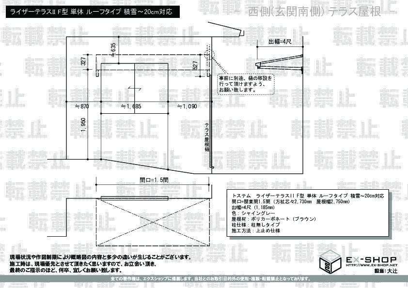 サイズ | 屋根幅 2,750mm 出幅 1,185mm |