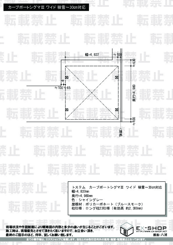 | サイズ | 屋根幅 2,750mm 出幅 2,085mm |