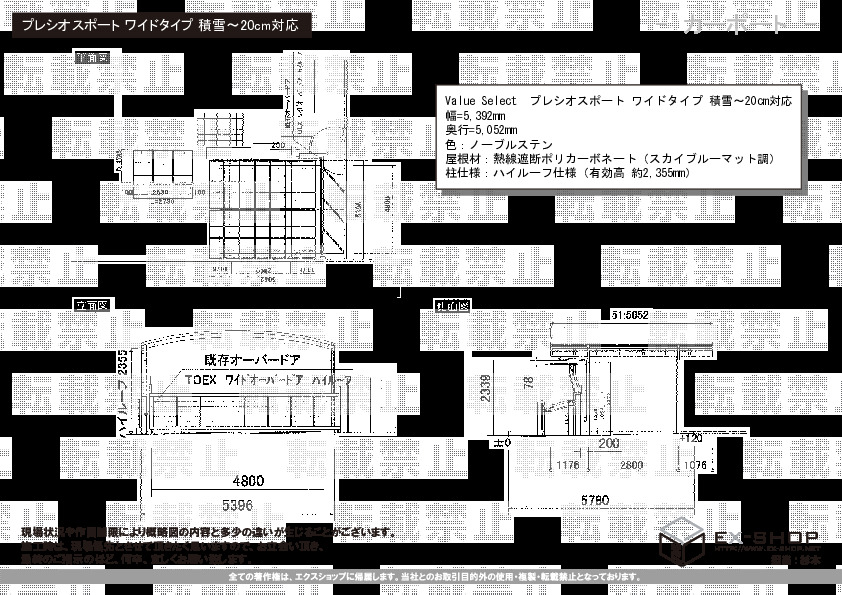 サイズ | 屋根幅 2,750mm 出幅 1,785mm |