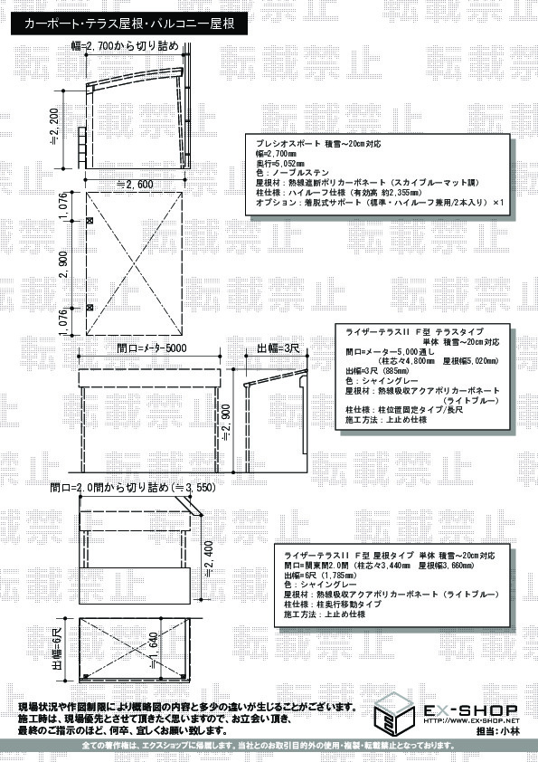 サイズ | 屋根幅 5,020mm 出幅 885mm |
