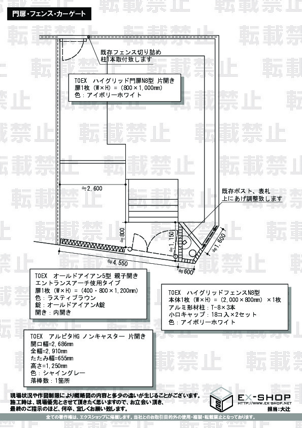 この度は、アルミ製のアイアン製門扉、カーゲート、フェンスの施工をご依頼頂きまして、誠に有り難うございます。上品で高級感のあるお仕上がりに、スタッフ一同大変嬉しく存じます。お客様のご希望に沿う形で、すべて進行することができましたことは、私どもにとりましても自信となりました。今後ますます精進して参りますので、また機会がございましたら、ぜひ弊社をご用命くださいますよう、お願い申し上げます。