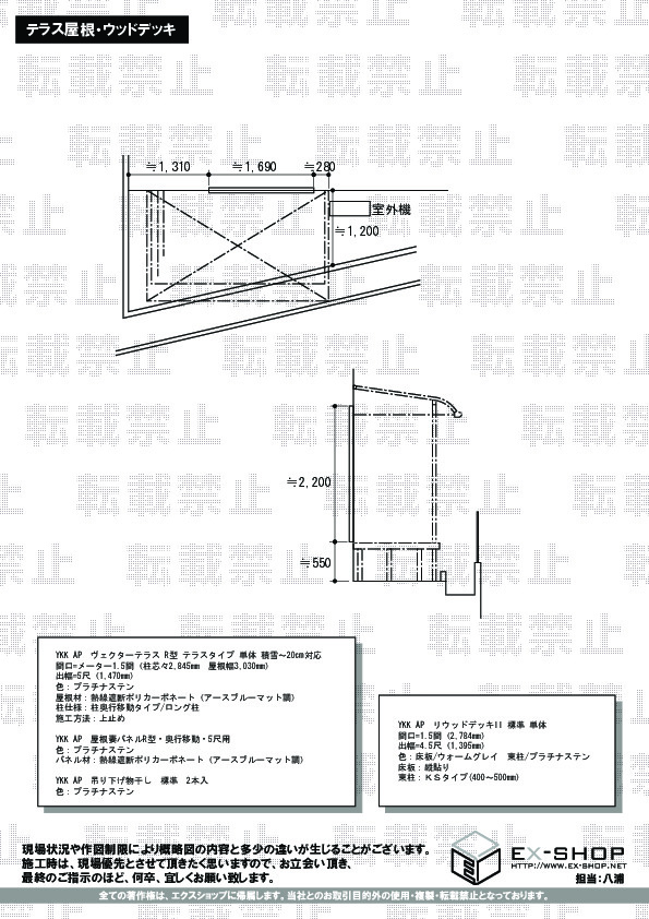 | サイズ | 屋根幅 3,030mm 出幅 1,470mm |