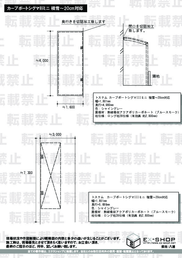 | 屋根高等 | ロング柱28仕様(有効高 約2,800mm) |