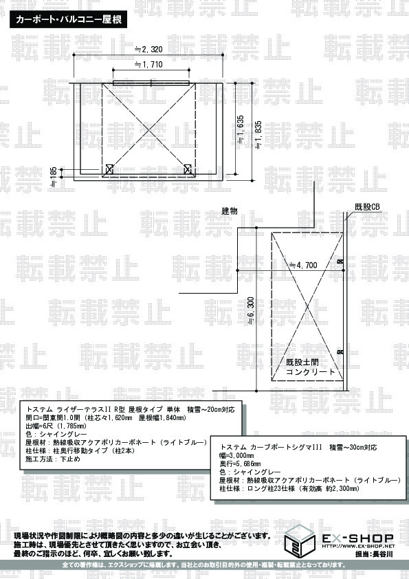 屋根高等 | ロング柱23仕様(有効高 約2,300mm) |