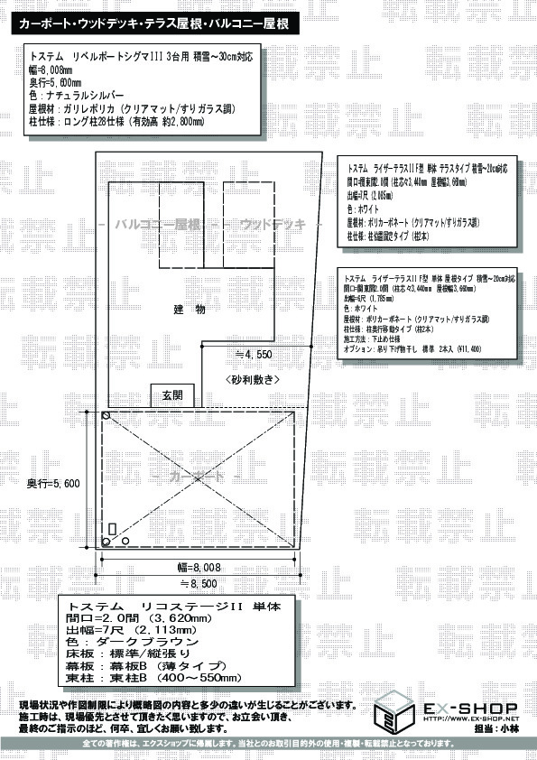 | サイズ | 屋根幅 3,660mm 出幅 1,785mm |
