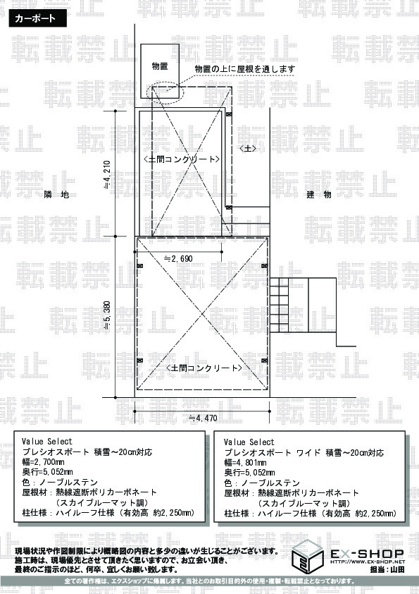 この度は、レギュラータイプとワイドタイプのプレシオスポートの施工をご依頼頂きまして、誠に有難うございます。大型のカーポートの施工でございますが、ご不安もなくご依頼頂けましたこと、大変嬉しく存じます。圧迫感のない、すっきりとしたお仕上がりが素敵でございますね。今後も変わらず、お客様のご満足の為に精進して参りたいと存じますので、また何かございましたらご遠慮なくエクスショップまでご連絡ください。