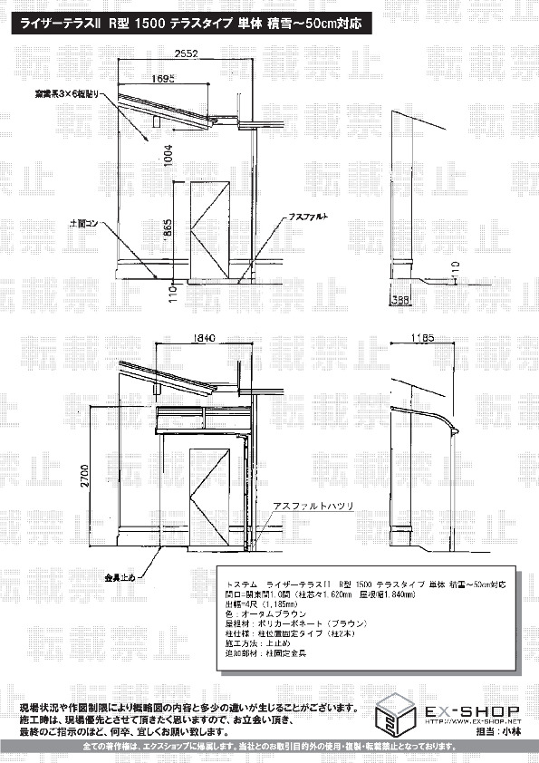 インターネットでのお買い物は顔の見えないお取引となりますので、お客様がご不安に思われることのないよう、お電話とメールにて、随時ご連絡を差し上げております。この様なお言葉を頂き、大変光栄に存じます。積雪50pまで対応致しますライザーテラスII R型の施工を、二か所にご依頼頂きまして、誠に有難うございます。ご自宅の雰囲気を損なわない、美しい納まり具合に、スタッフ一同安堵致しました。これからも、お客様のご期待を裏切らないよう精進して参りますので、また機会がございましたら、ぜひエクスショップをご利用頂けますよう、宜しくお願い致します。