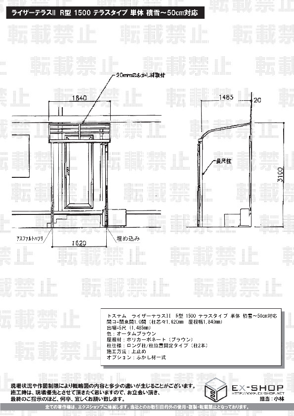 | サイズ | 屋根幅 1,840mm 出幅 1,485mm |