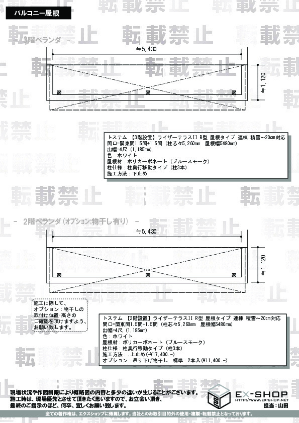 サイズ | 屋根幅 5,480mm 出幅 1,185mm |