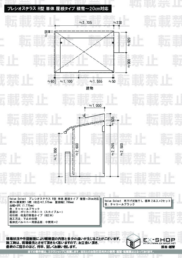 サイズ | 屋根幅 2,760mm 出幅 1,770mm |