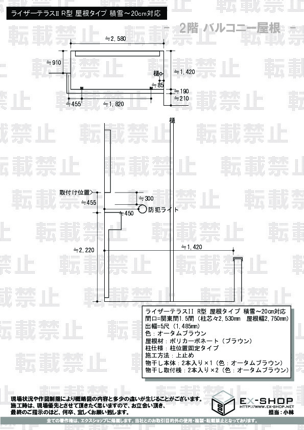 サイズ | 屋根幅 2,750mm 出幅 1,485mm |