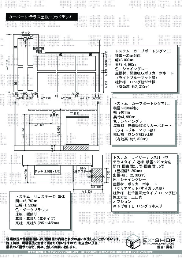 | 屋根高等 | ロング柱23仕様(有効高 約2,312mm) |