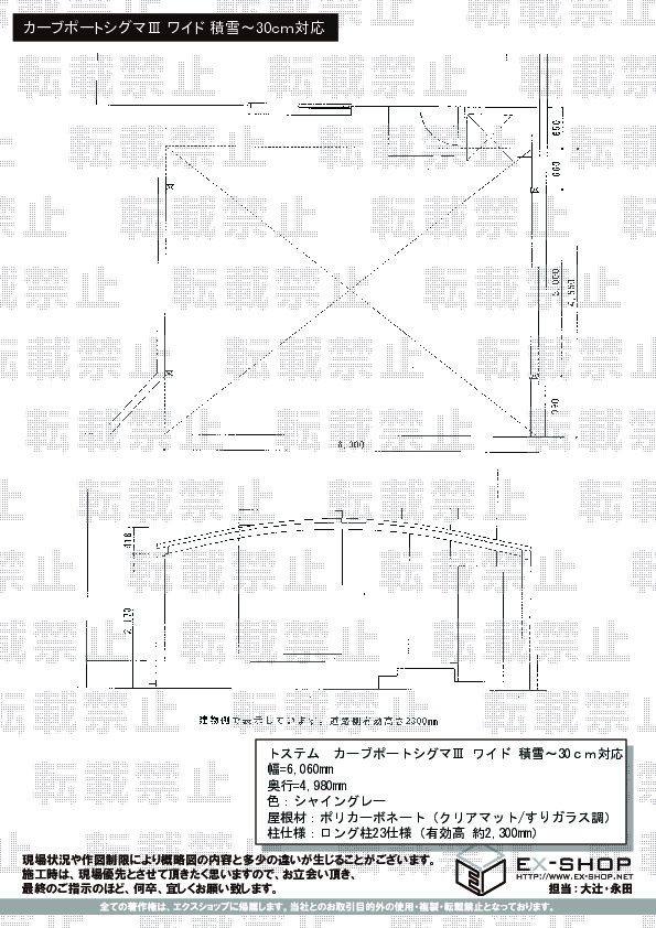 | 屋根材等 | ポリカーボネート(クリアマット/すりガラス調) |