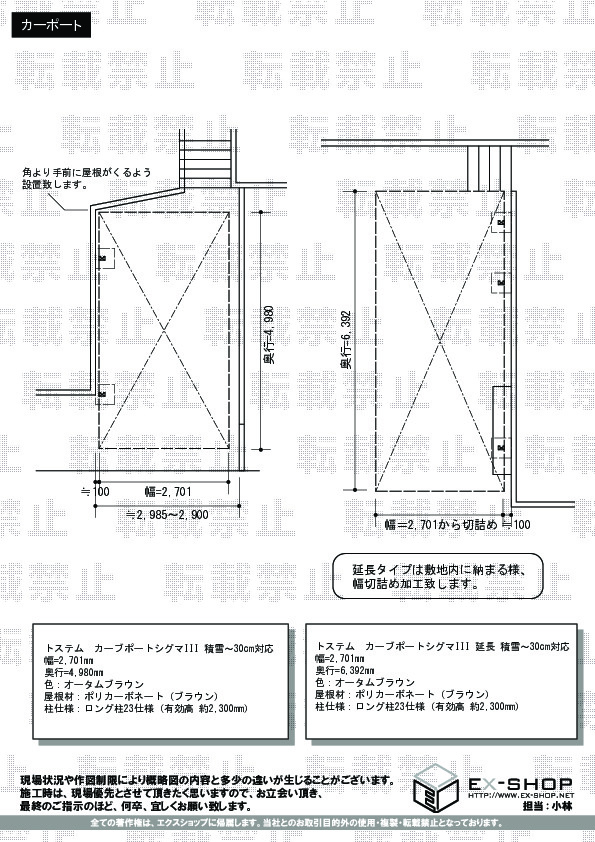 | 屋根高等 | ロング柱23仕様(有効高 約2,300mm) |