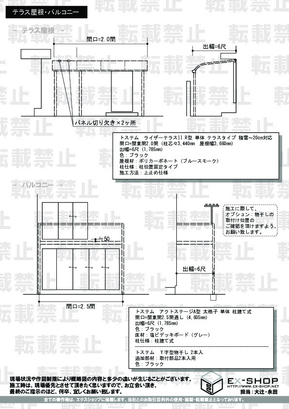 | サイズ | 屋根幅 3,660mm 出幅 1,785mm |