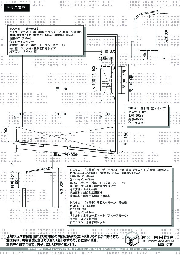サイズ | 屋根幅 3,660mm 出幅 885mm |
