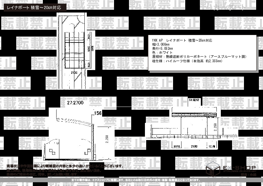 サイズ | 屋根幅 2,760mm 出幅 1,770mm |