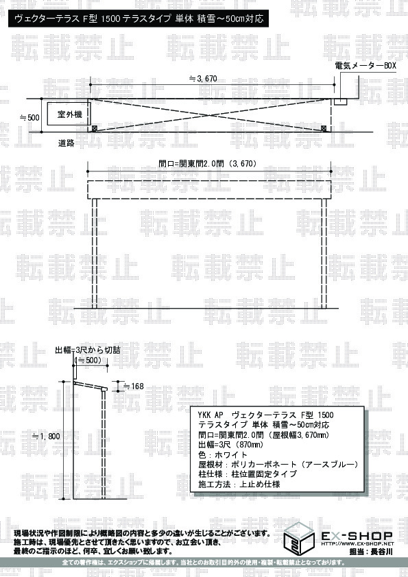 サイズ | 屋根幅 3,670mm 出幅 870mm |