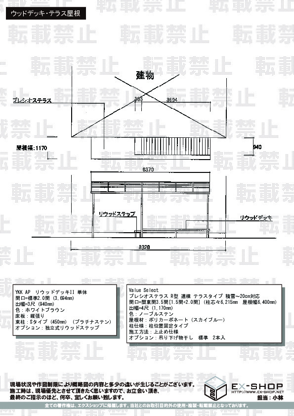 サイズ | 屋根幅 6,400mm 出幅 1,170mm |