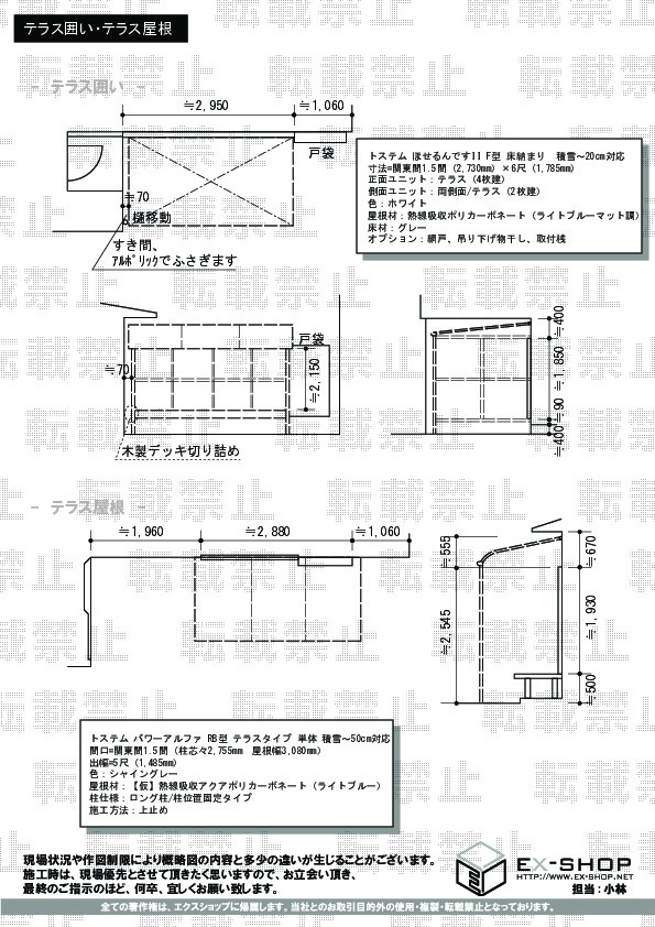 | サイズ | 屋根幅 3,080mm 出幅 1,485mm |