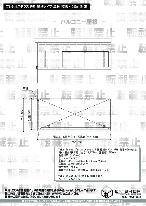 | サイズ | 屋根幅 2,760mm 出幅 1,470mm |