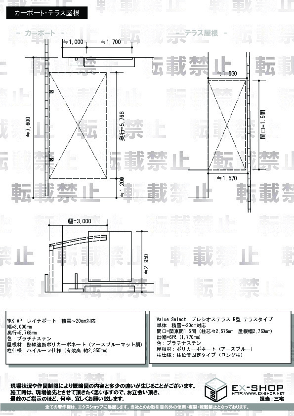| サイズ | 屋根幅 2,760mm 出幅 1,770mm |