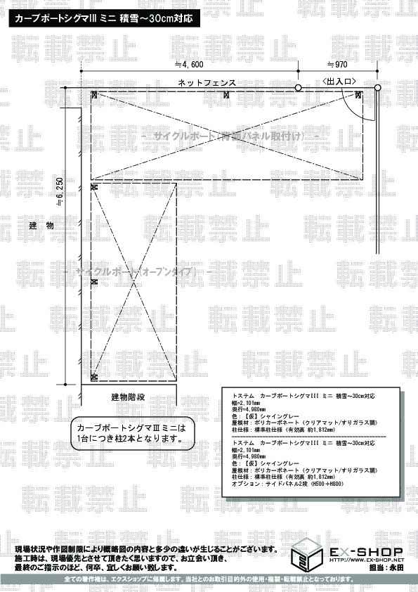| 屋根材等 | ポリカーボネート(クリアマット/すりガラス調) |