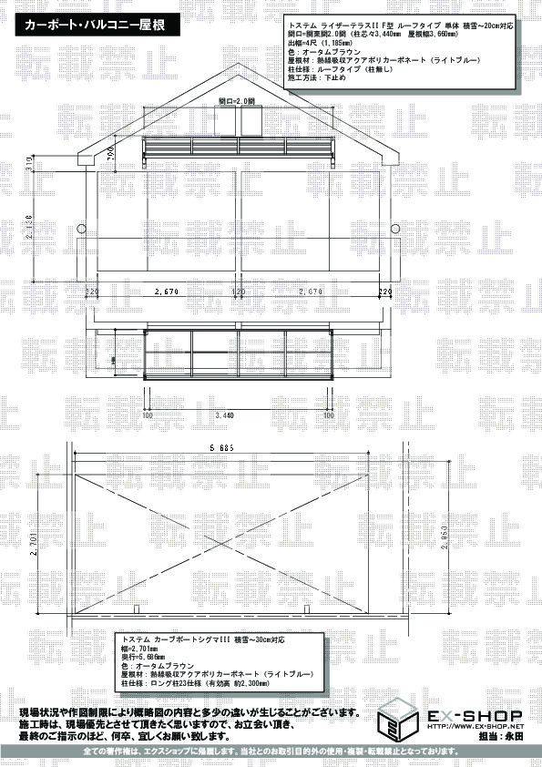 | サイズ | 屋根幅 3,660mm 出幅 1,185mm |