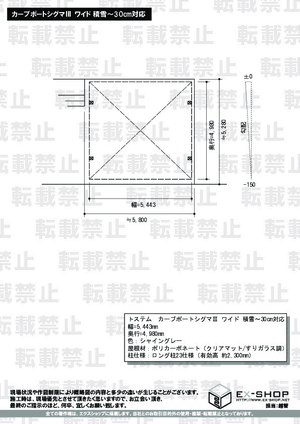 | 屋根材等 | ポリカーボネート(クリアマット/すりガラス調) |