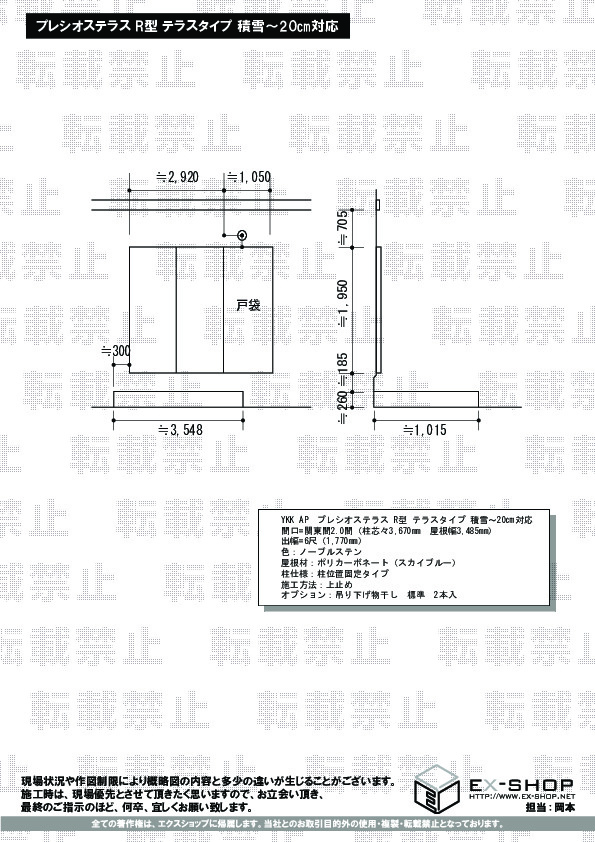 サイズ | 屋根幅 3,485mm 出幅 1,770mm |