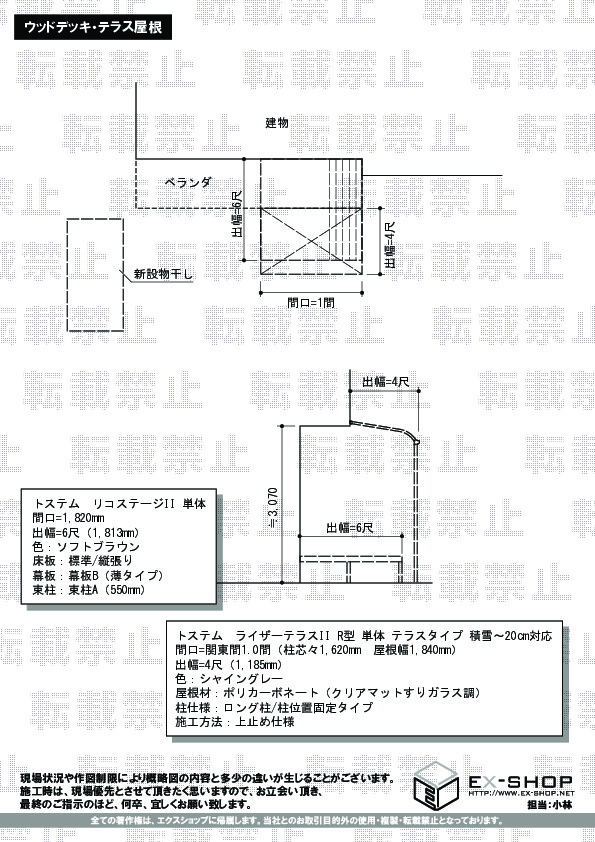 | サイズ | 屋根幅 1,840mm 出幅 1,185mm |