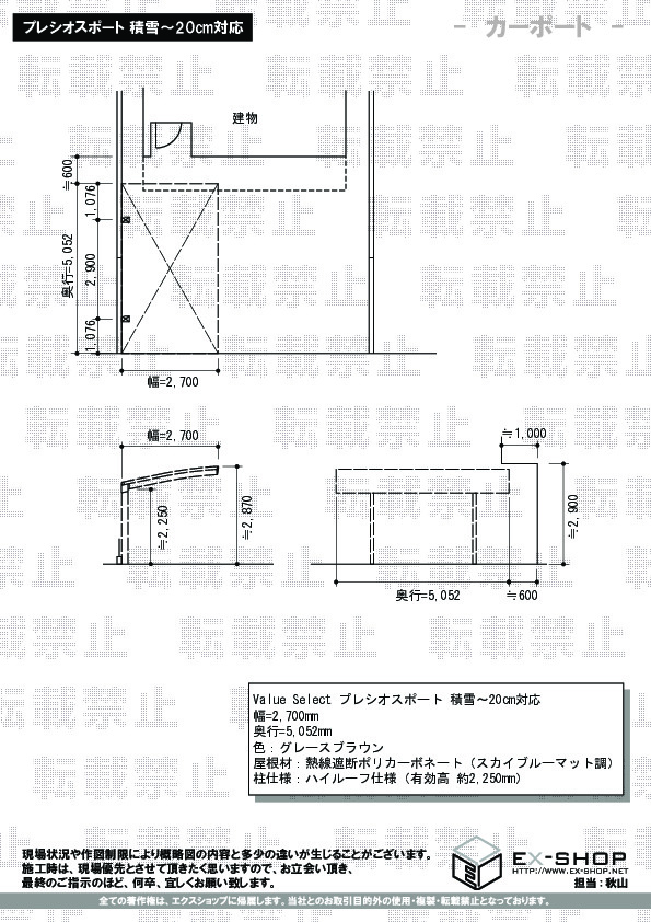 | サイズ | 屋根幅 3,670mm 出幅 870mm |