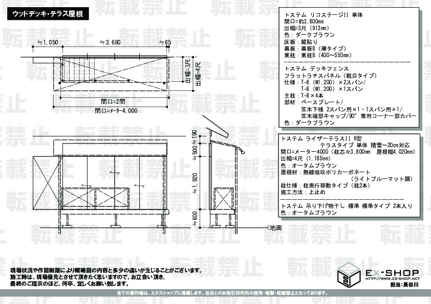 サイズ | 屋根幅 4,020mm 出幅 1,185mm |