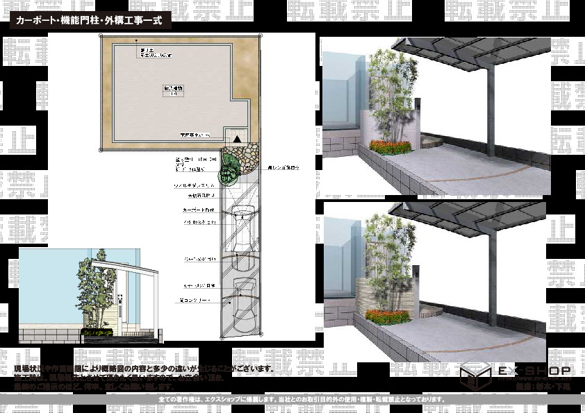 この度は、外構工事一式と、機能門柱・カーポートの施工をご依頼頂きまして、誠に有難うございます。お見積りのご提出までお待たせしてしまい、申し訳ございませんでした。今後は、お客様の立場に立って、迅速な対応を心掛けて参ります。ご迷惑をおかけ致しましたが、ご提案致しましたプランをお気に召して頂き、施工をご依頼頂けましたこと、誠に光栄に存じます。すっきりとした上品なお仕上がりが素敵でございますね。今後益々精進して参りますので、また機会がございましたら、ぜひ弊社をご用命くださいますよう、お願い申し上げます。