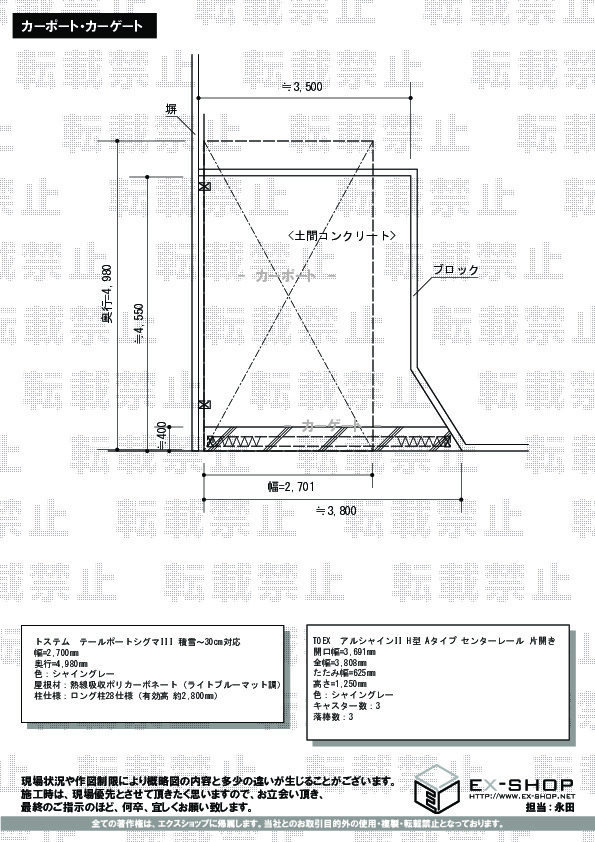 屋根高等 | ロング柱28仕様(有効高 約2,800mm) |