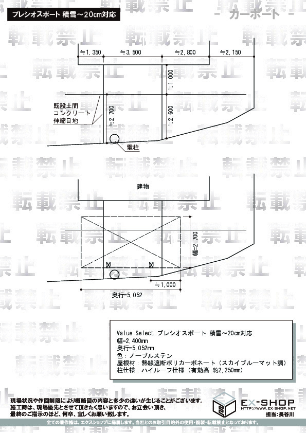 サイズ | 屋根幅 2,760mm 出幅 1,470mm |