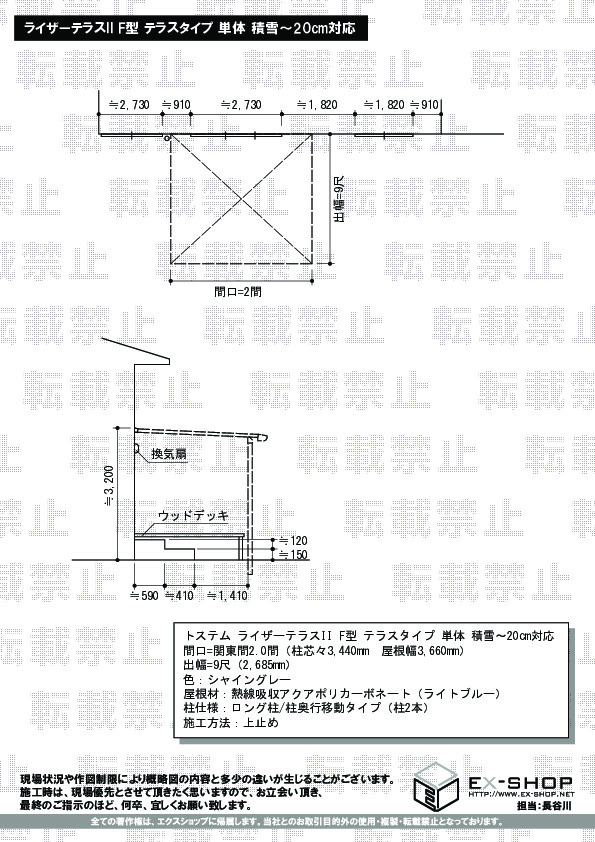 サイズ | 屋根幅 3,660mm 出幅 2,985mm |